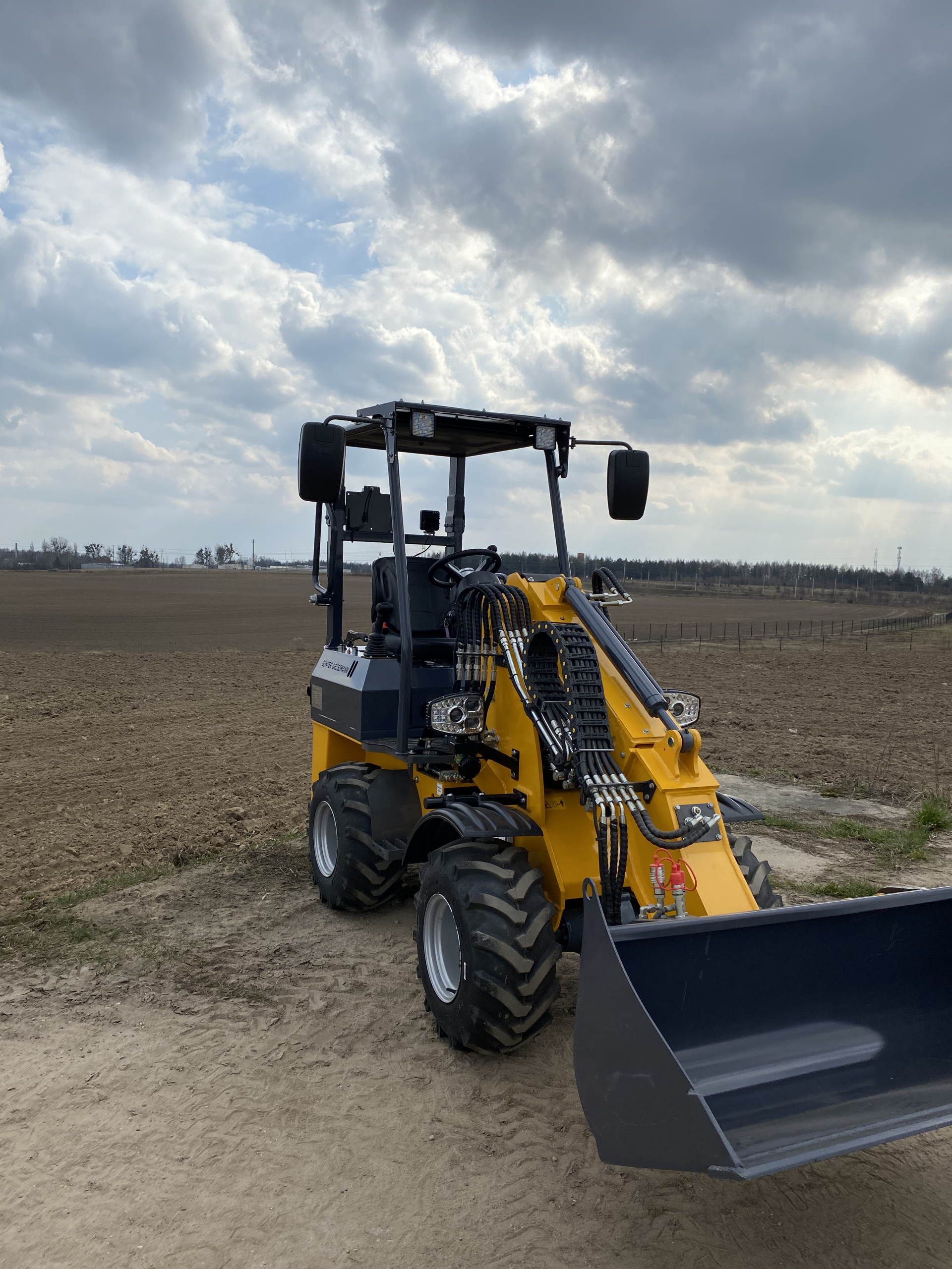 The telescopic loader is equipped with a 0.4 m³ bucket, allowing for fast and precise material handling. With a load capacity of 600 kg, the machine maintains stability and efficiency even when transporting heavier loads.