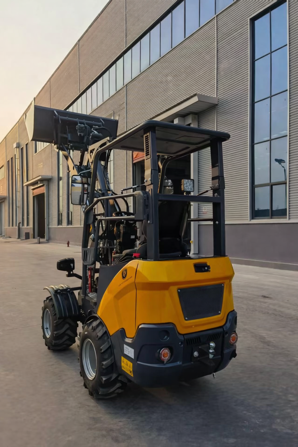 Za sprawną pracę osprzętu odpowiada włoska pompa hydrauliczna PWG o wydajności 36 l/min oraz ciśnieniu roboczym 16 MPa. Ładowarka oferuje ładowność na poziomie 600 kg oraz pojemność łyżki 0,3 m³, co czyni ją idealnym rozwiązaniem do codziennych zadań przeładunkowych. Maksymalna wysokość podnoszenia wynosi 2,6 metra, zapewniając wygodę pracy na różnych poziomach.