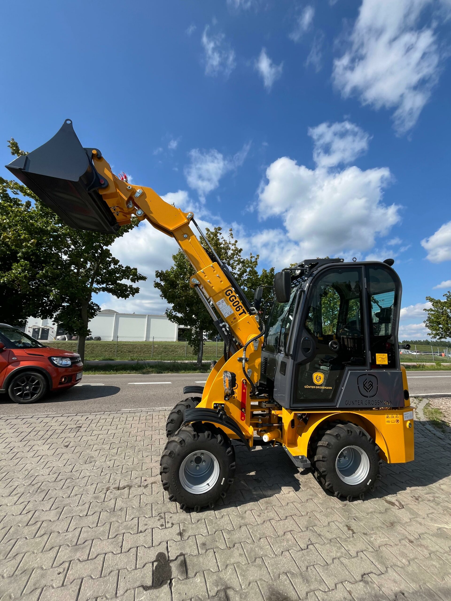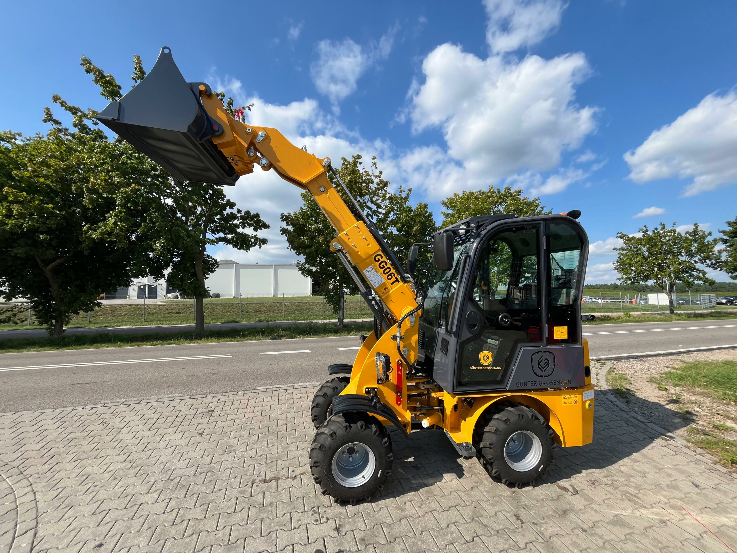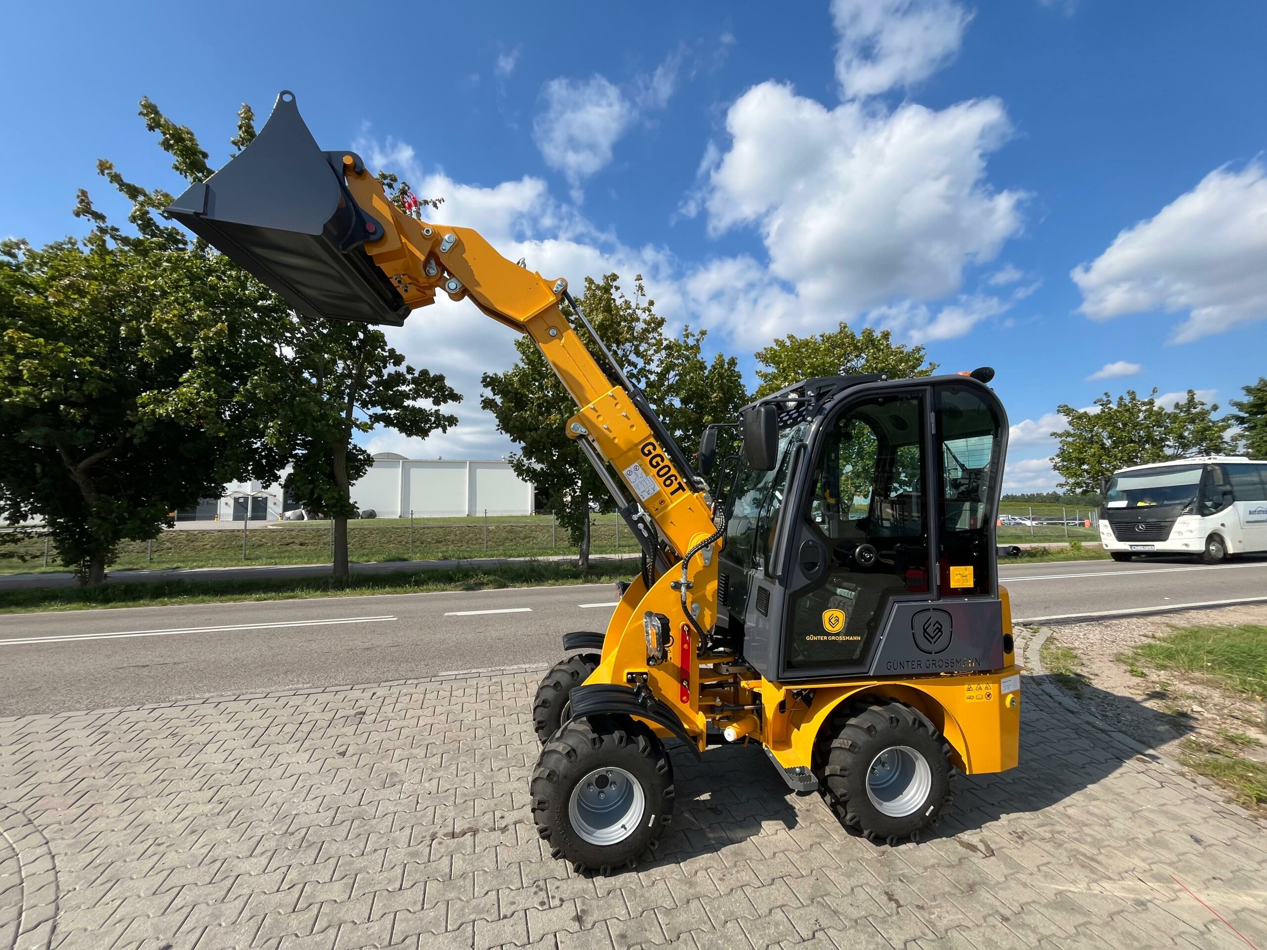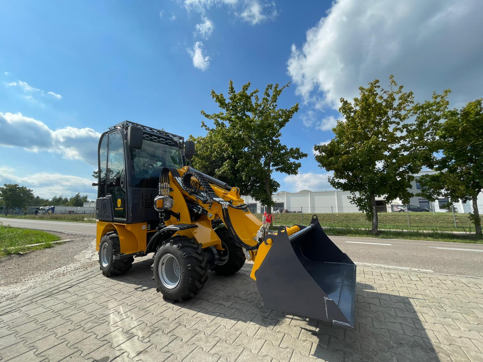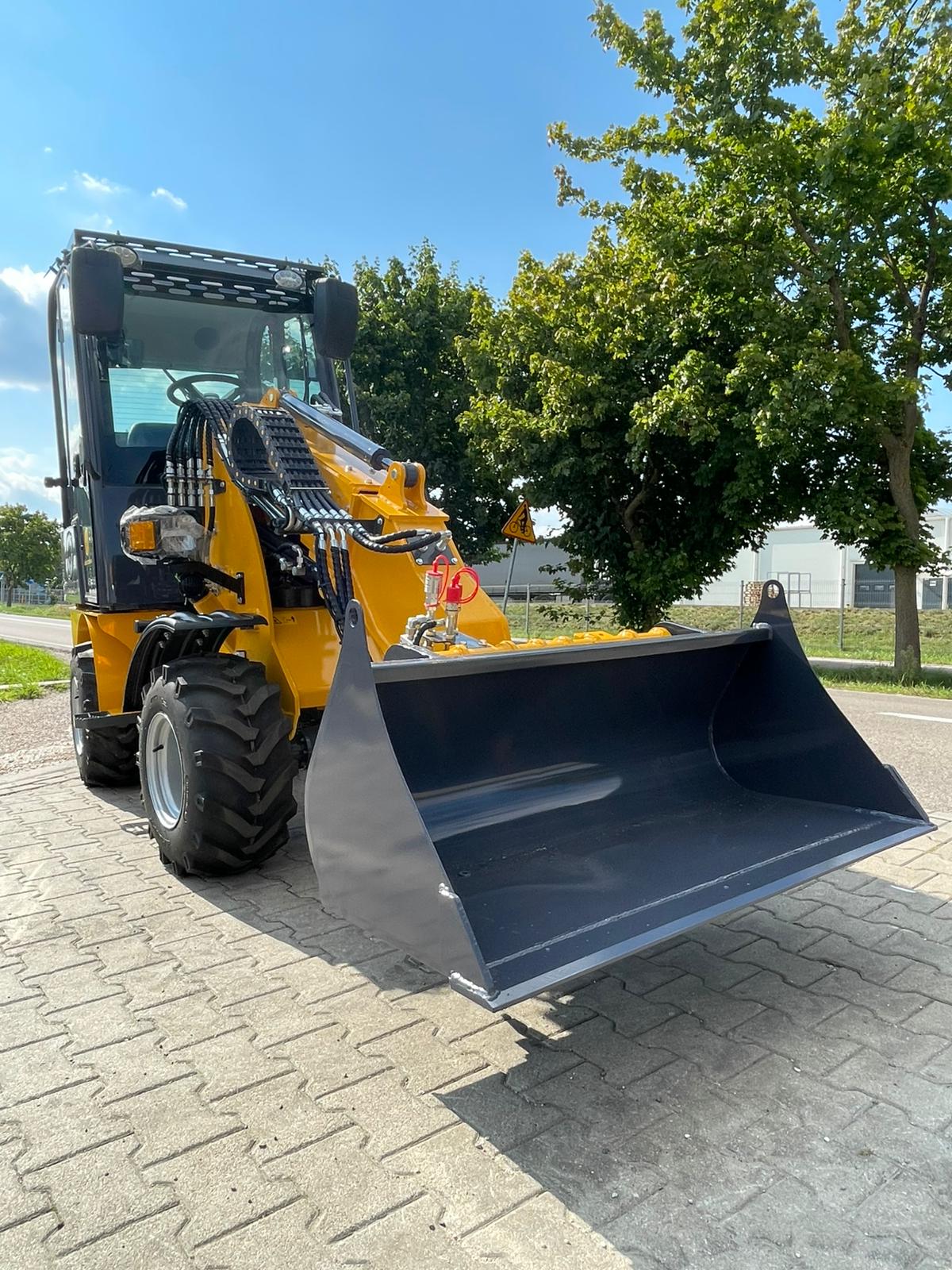 Ładowarka teleskopowa wyposażona jest w łyżkę o pojemności 0,4 m³, co pozwala na szybki i precyzyjny załadunek materiałów. Z ładownością 600 kg maszyna zachowuje stabilność i efektywność, nawet przy transportowaniu cięższych ładunków.