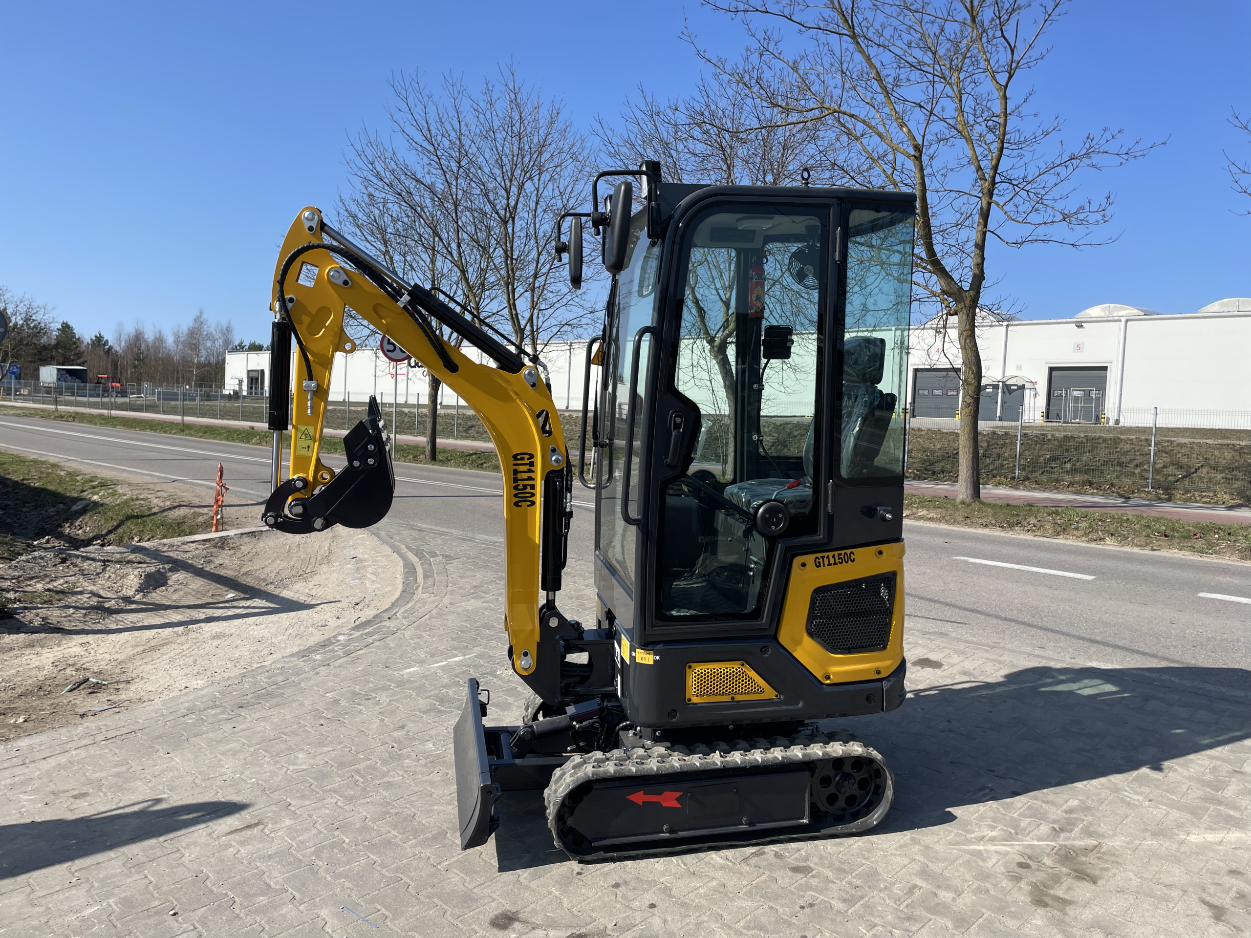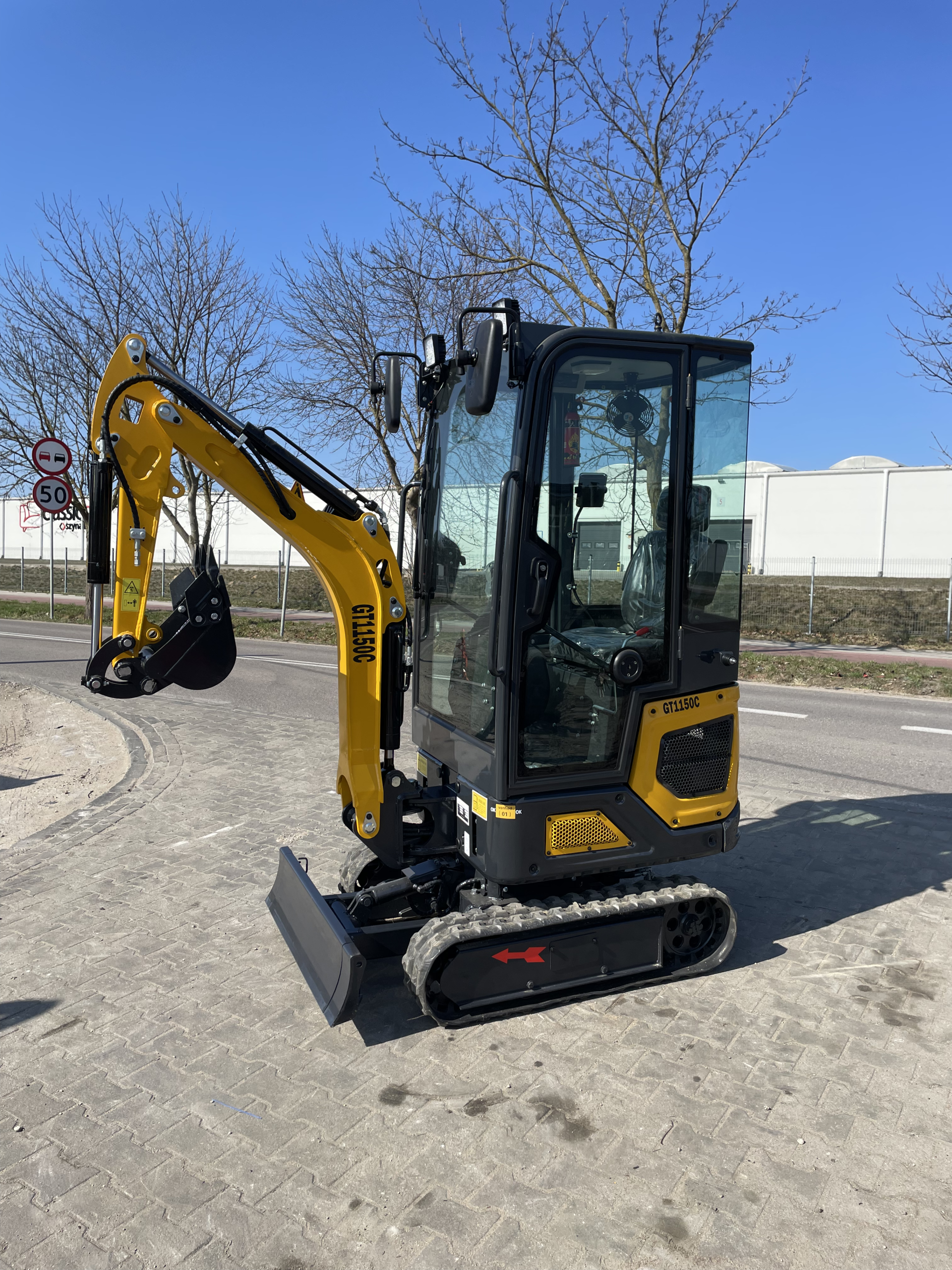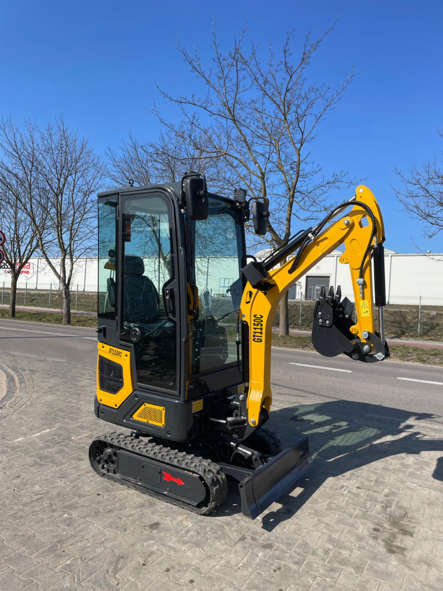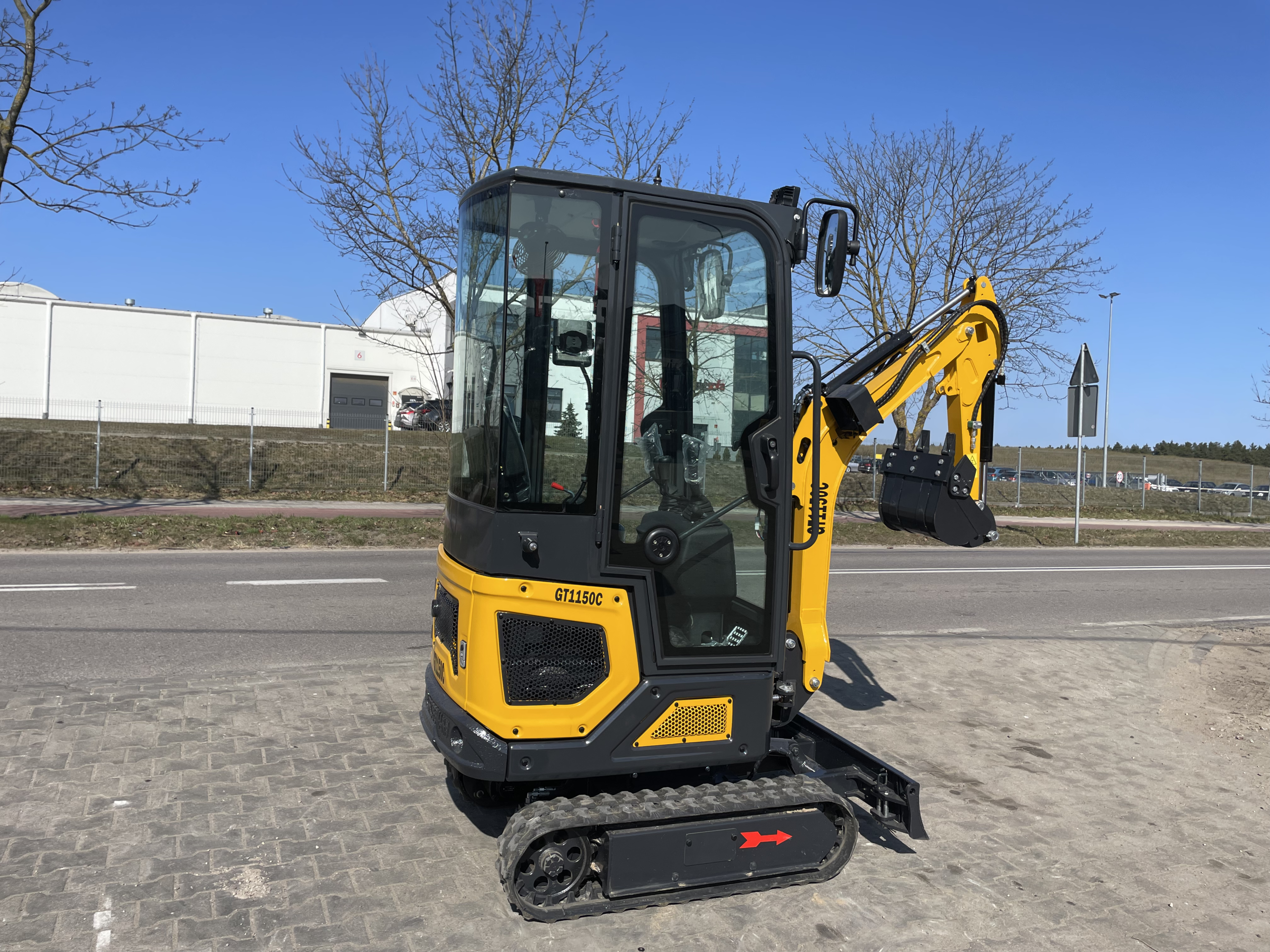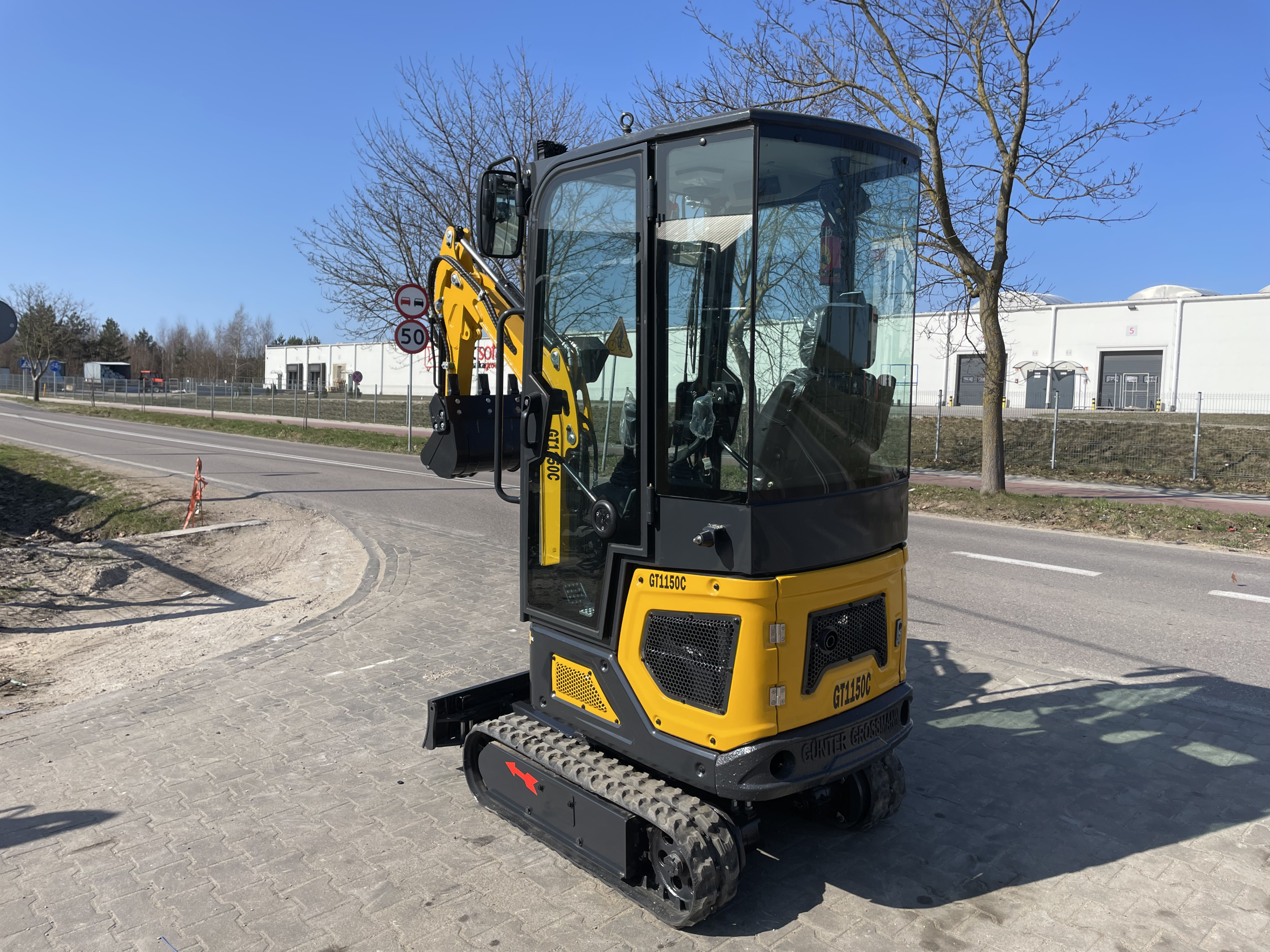 GT1150C została wyposażona w ergonomiczne sterowanie rozsuwane gąsienice, co umożliwia płynną i precyzyjną obsługę wszystkich funkcji roboczych. Skrętne ramię znacząco ułatwia wykonywanie wykopów przy ścianach, ogrodzeniach oraz w trudno dostępnych miejscach, zwiększając funkcjonalność maszyny.