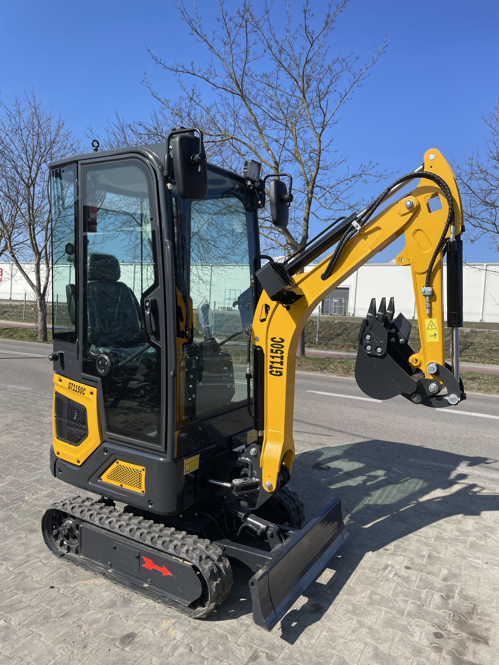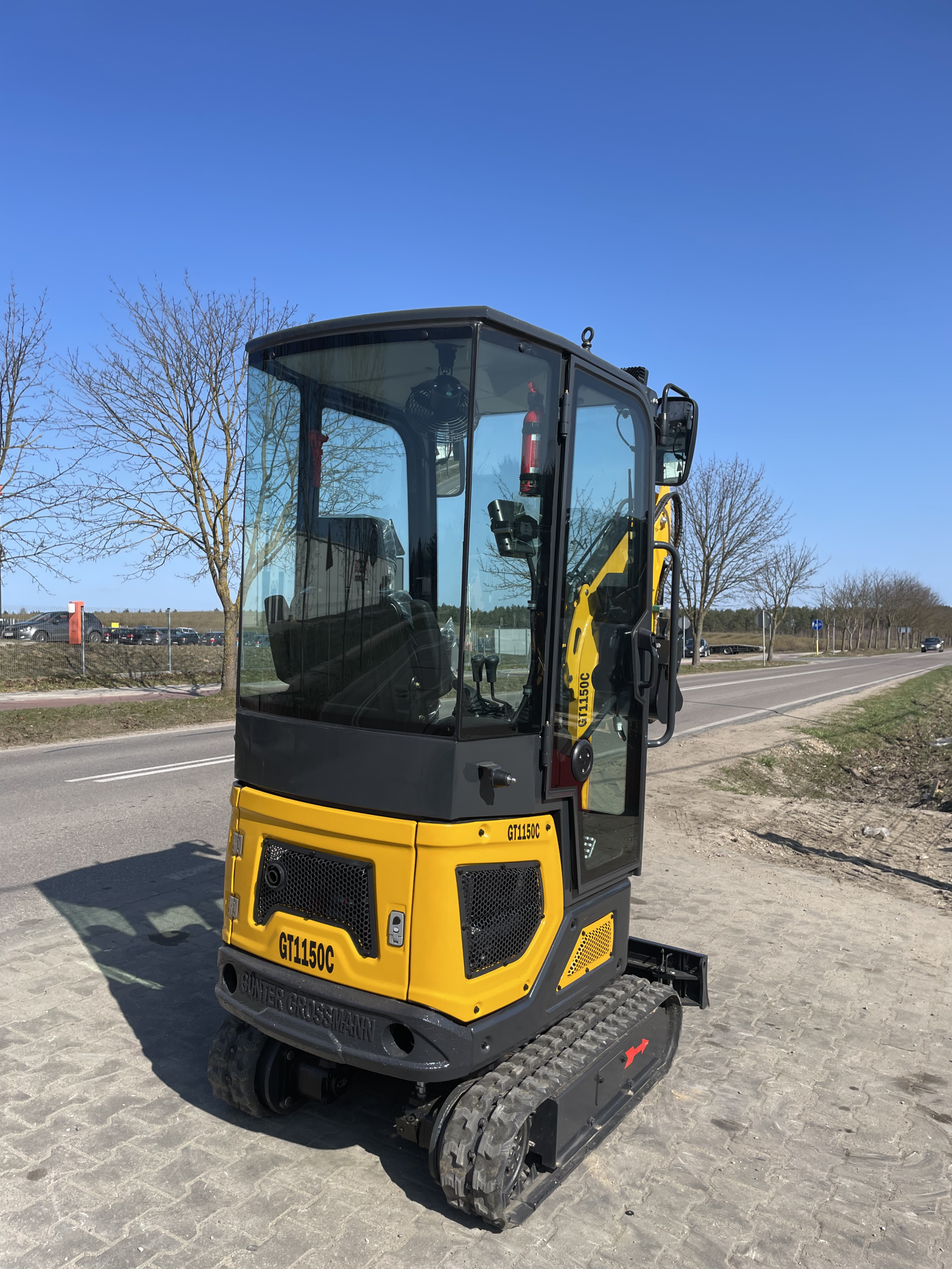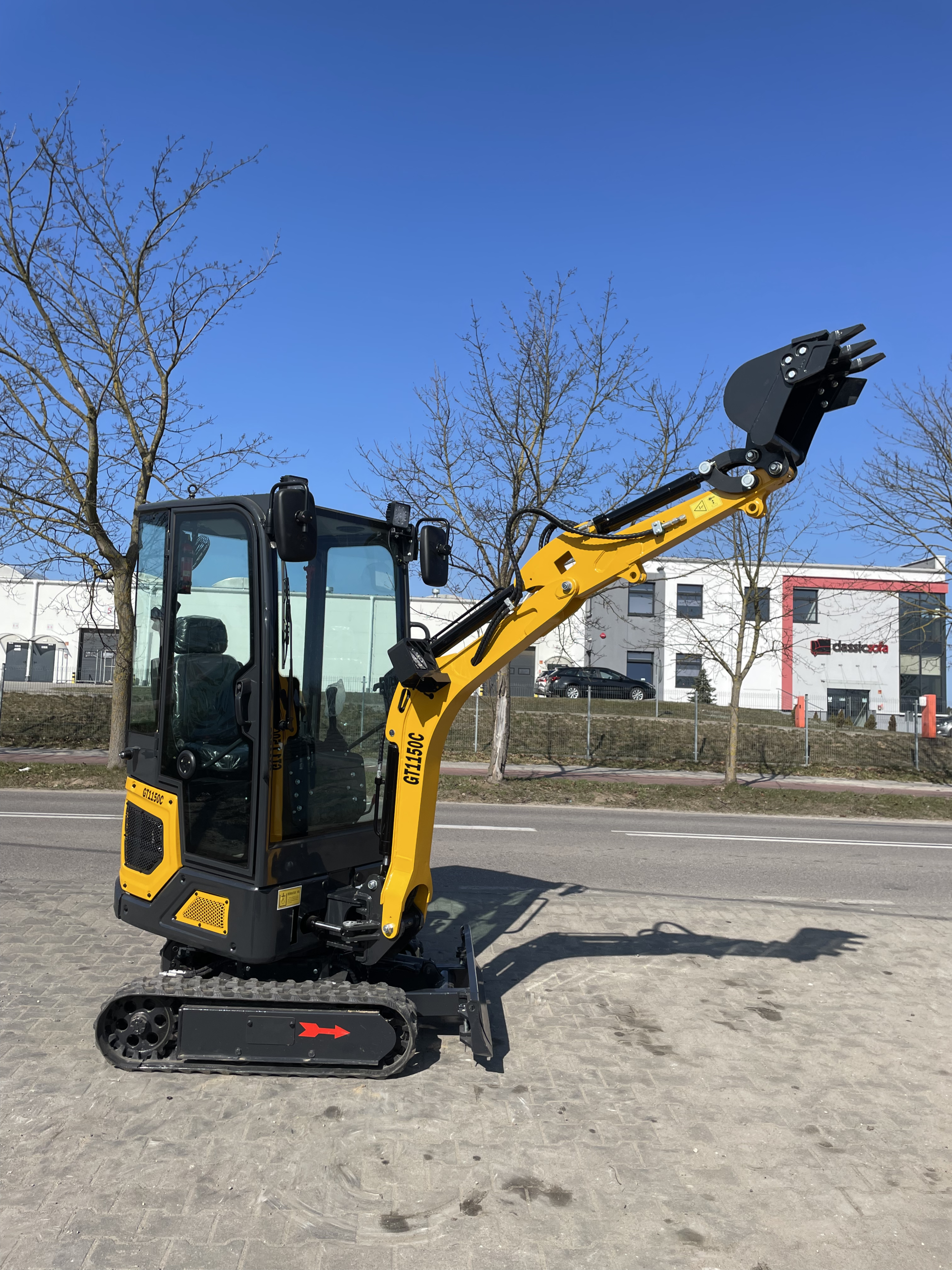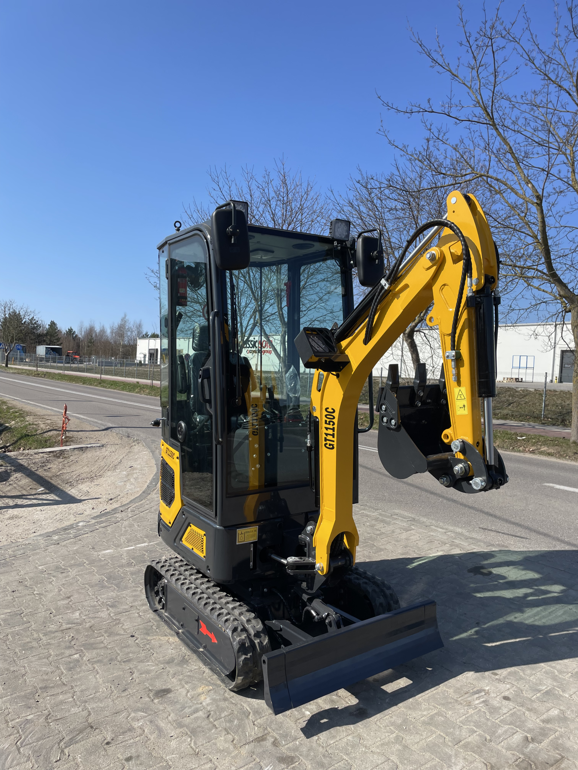 GT1150C została wyposażona w ergonomiczne sterowanie rozsuwane gąsienice, co umożliwia płynną i precyzyjną obsługę wszystkich funkcji roboczych. Skrętne ramię znacząco ułatwia wykonywanie wykopów przy ścianach, ogrodzeniach oraz w trudno dostępnych miejscach, zwiększając funkcjonalność maszyny.