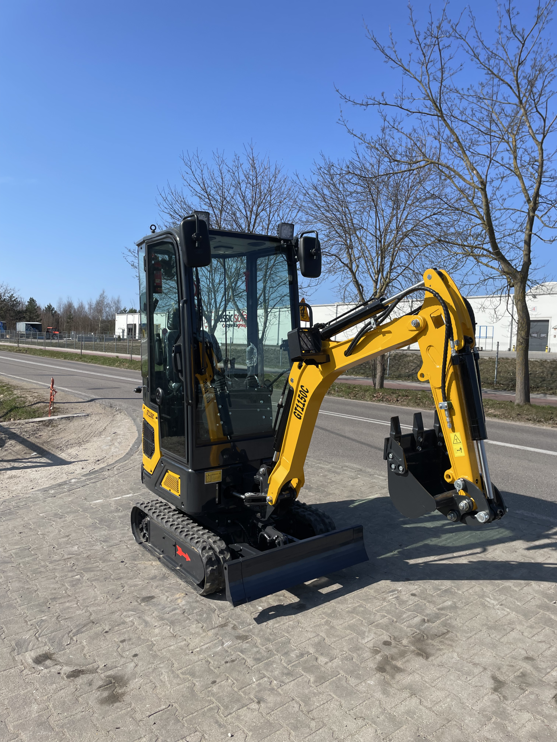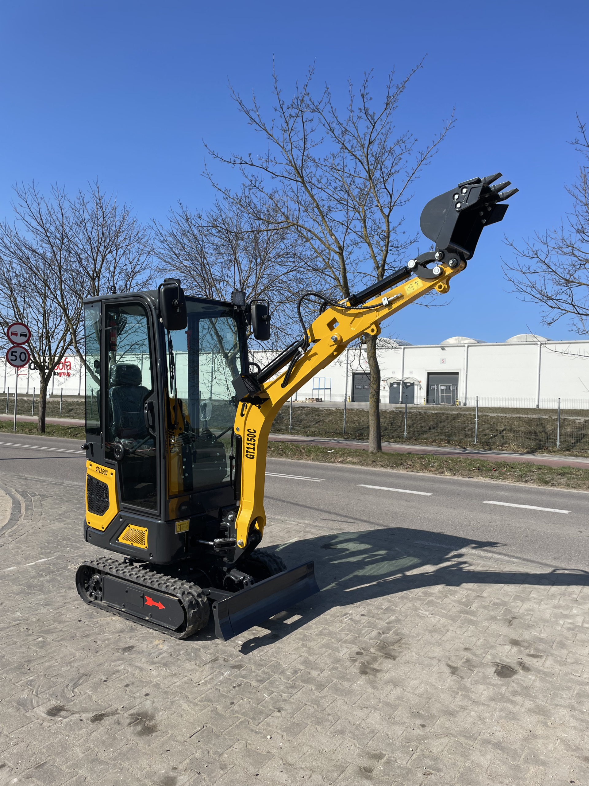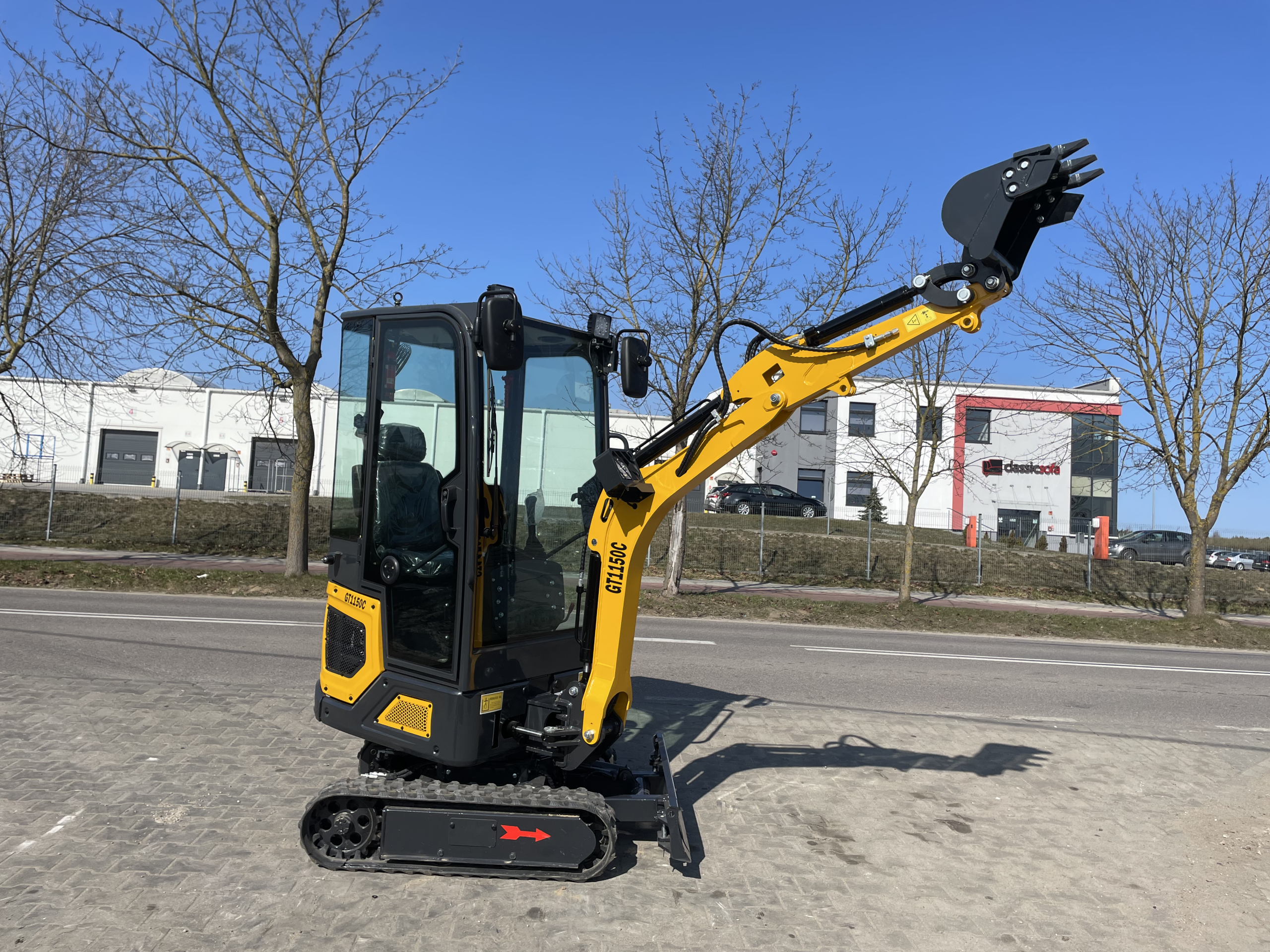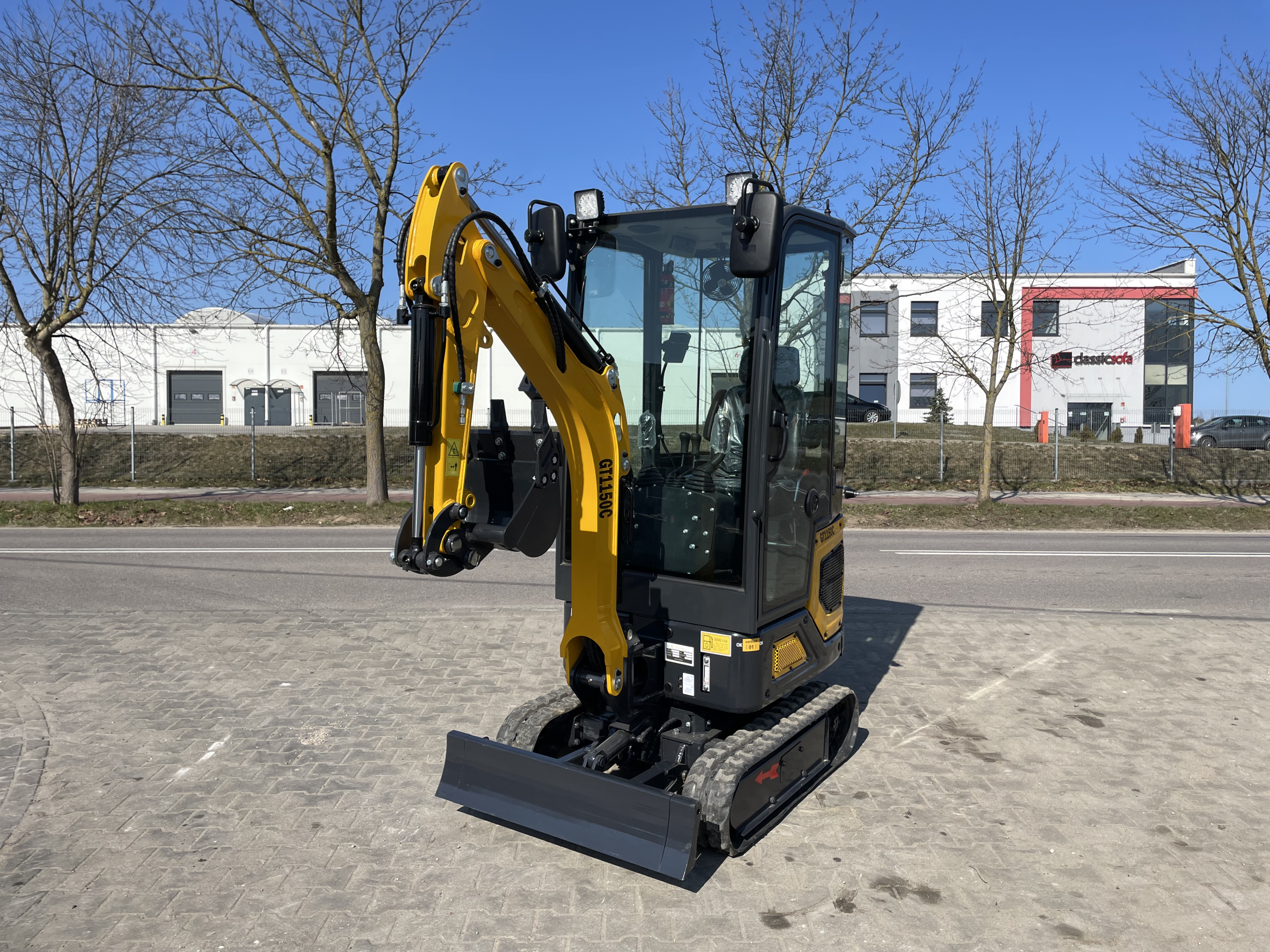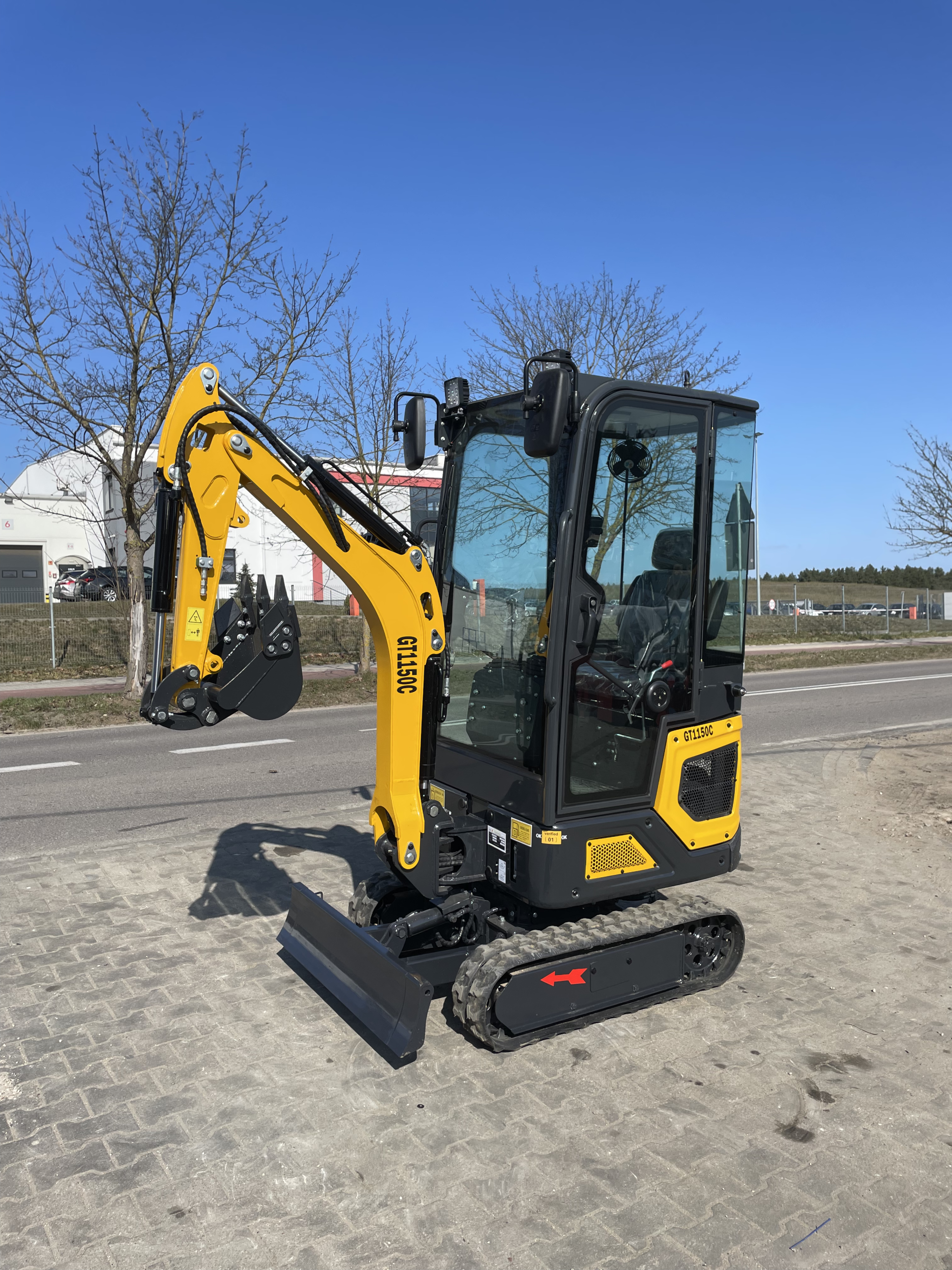 GT1150C została wyposażona w ergonomiczne sterowanie rozsuwane gąsienice, co umożliwia płynną i precyzyjną obsługę wszystkich funkcji roboczych. Skrętne ramię znacząco ułatwia wykonywanie wykopów przy ścianach, ogrodzeniach oraz w trudno dostępnych miejscach, zwiększając funkcjonalność maszyny.