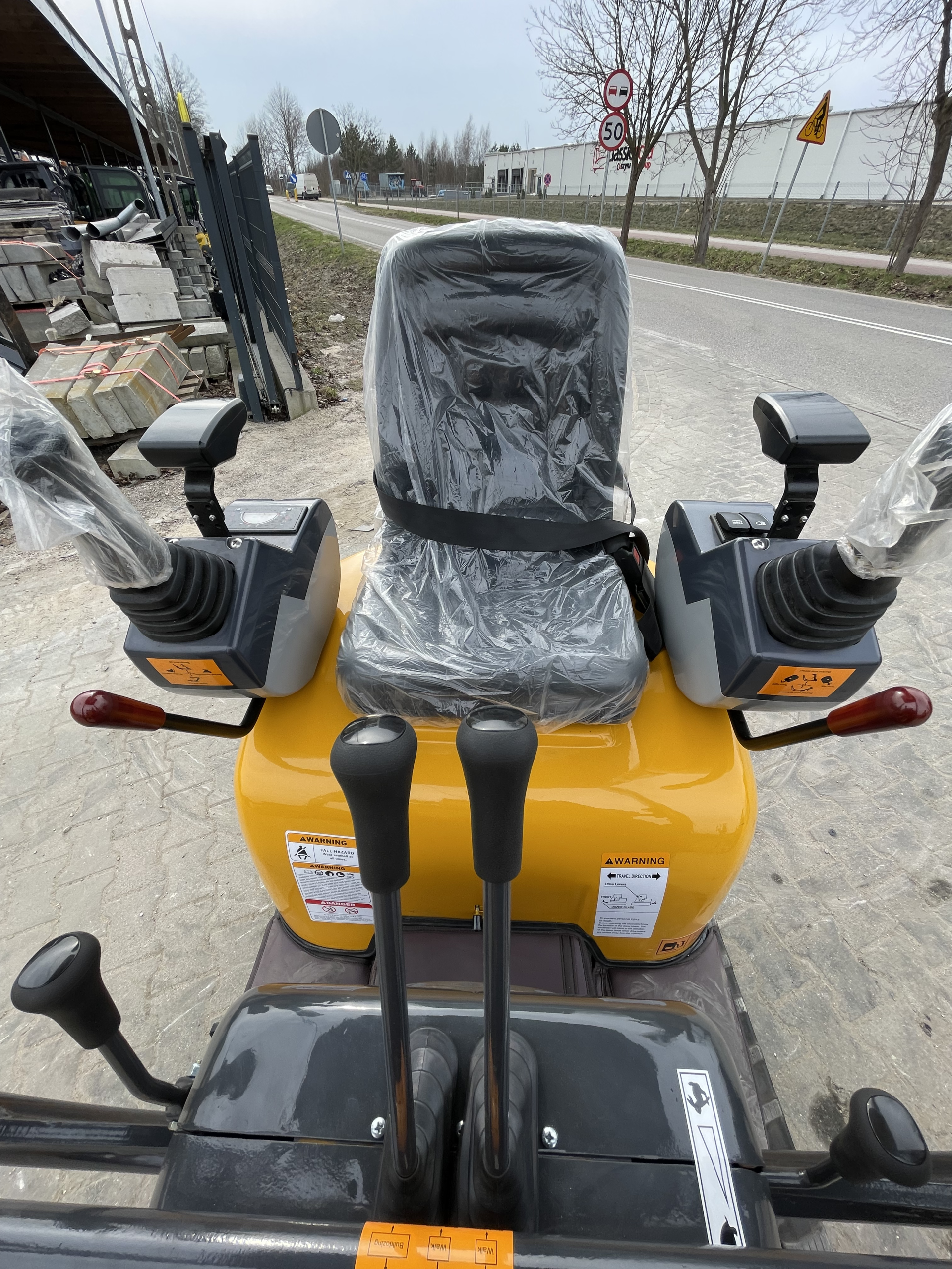 Minikoparka została wyposażona w ergonomiczne joysticki, które umożliwiają intuicyjne i dokładne sterowanie. Skrętne ramię (54° w lewo / 59° w prawo) znacząco ułatwia pracę przy ścianach i przeszkodach, a rozsuwane gąsienice zwiększają stabilność oraz umożliwiają dopasowanie maszyny do warunków pracy.