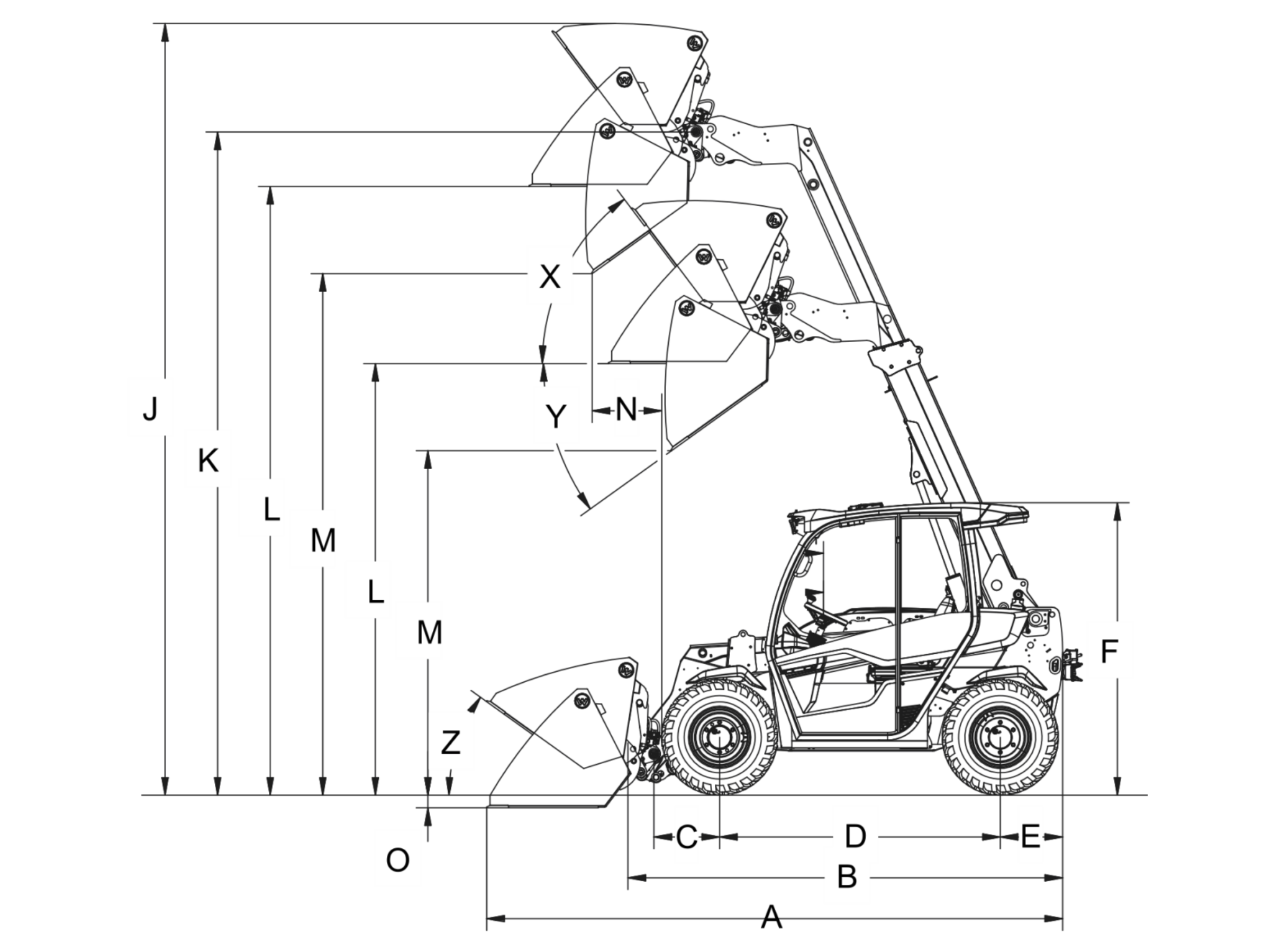 | M | Wysokość wysypu wysuniętego ramienia | 3566 mm |