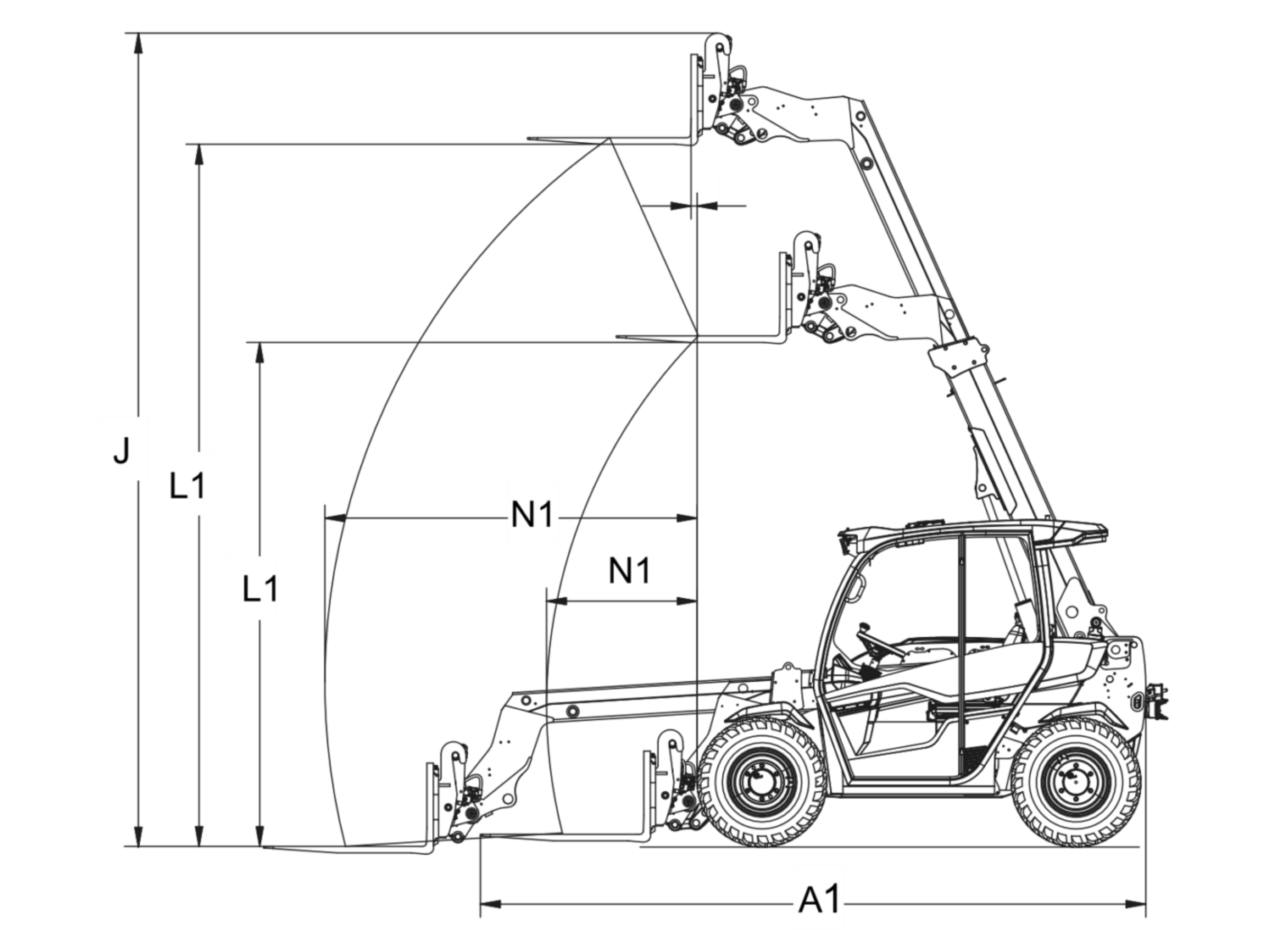 | N1 | Maksymalny zasięg przy wysokości załadunku | 2289 / 932 mm |