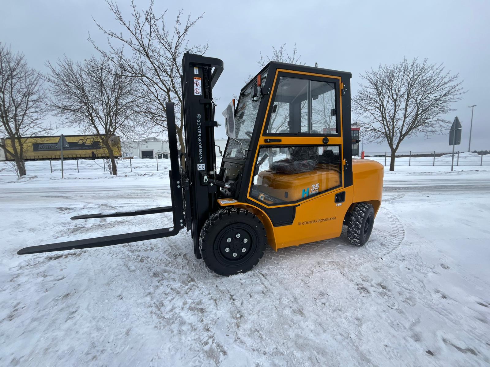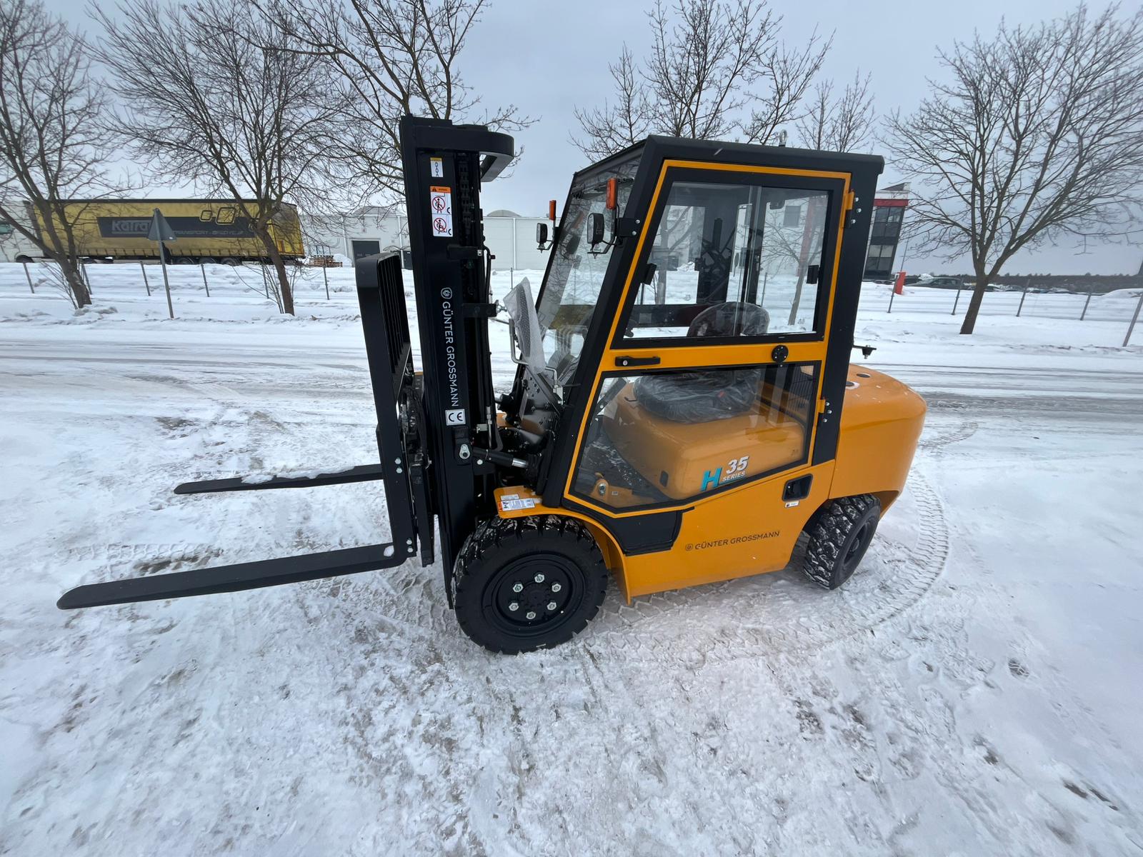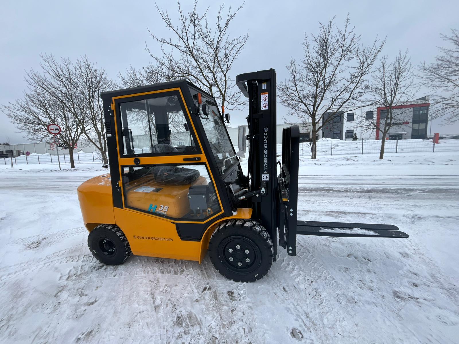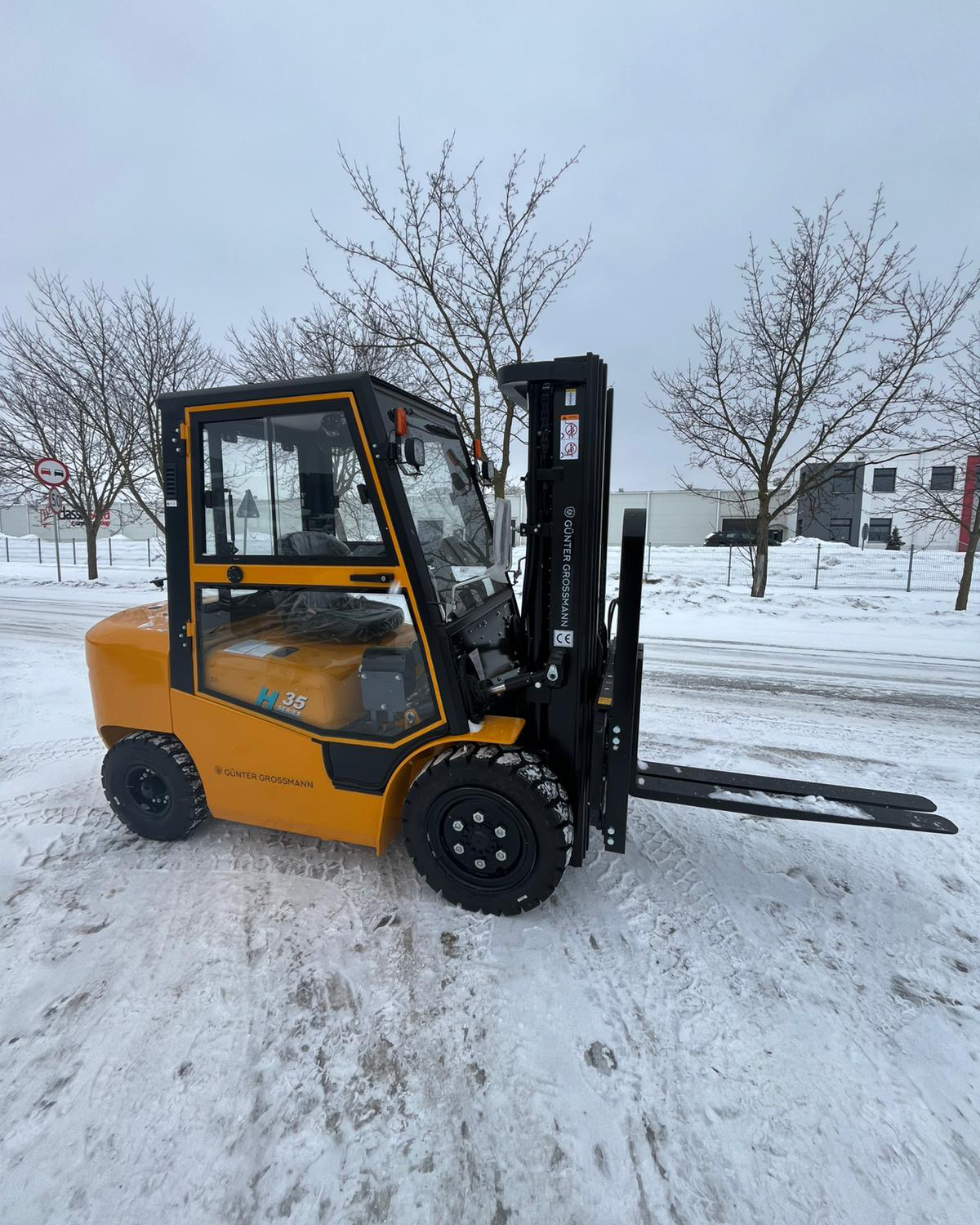 H35 3.5T 4.5M Kabina to również komfort pracy operatora. Ergonomiczna kabina z intuicyjnym sterowaniem oraz doskonałą widocznością pozwala na precyzyjne i bezpieczne operowanie wózkiem. Wydajność zwiększa także duży zbiornik paliwa o pojemności 55 L, który zapewnia dłuższą pracę bez konieczności częstego tankowania.
