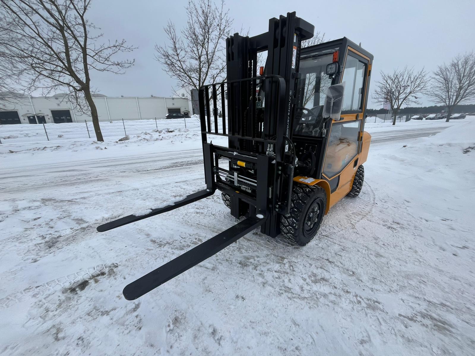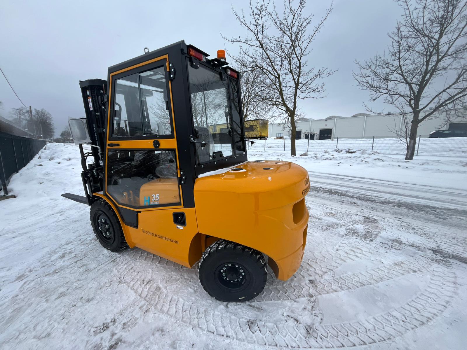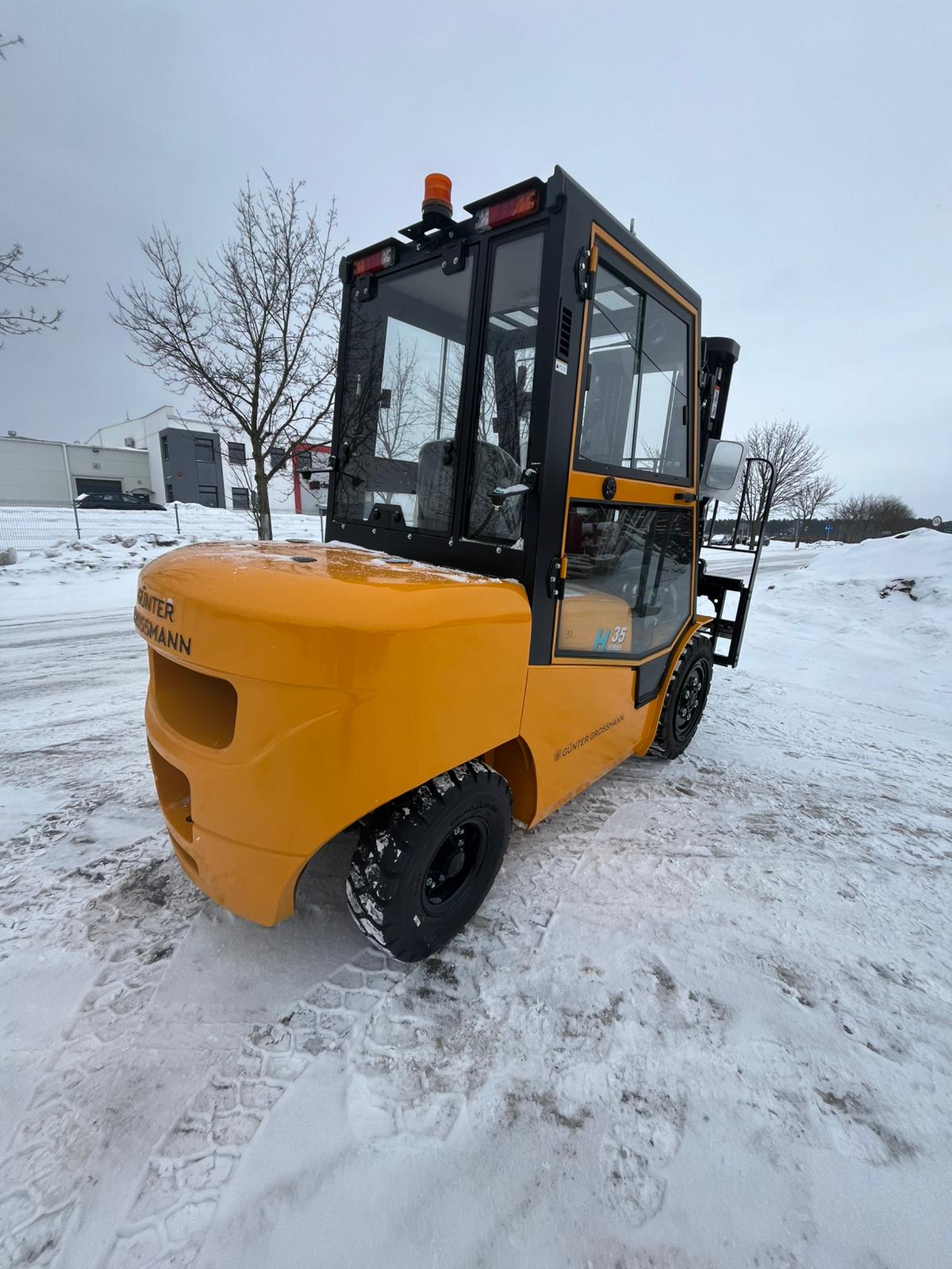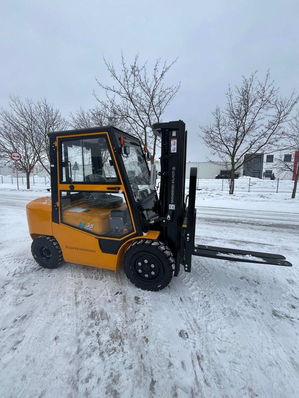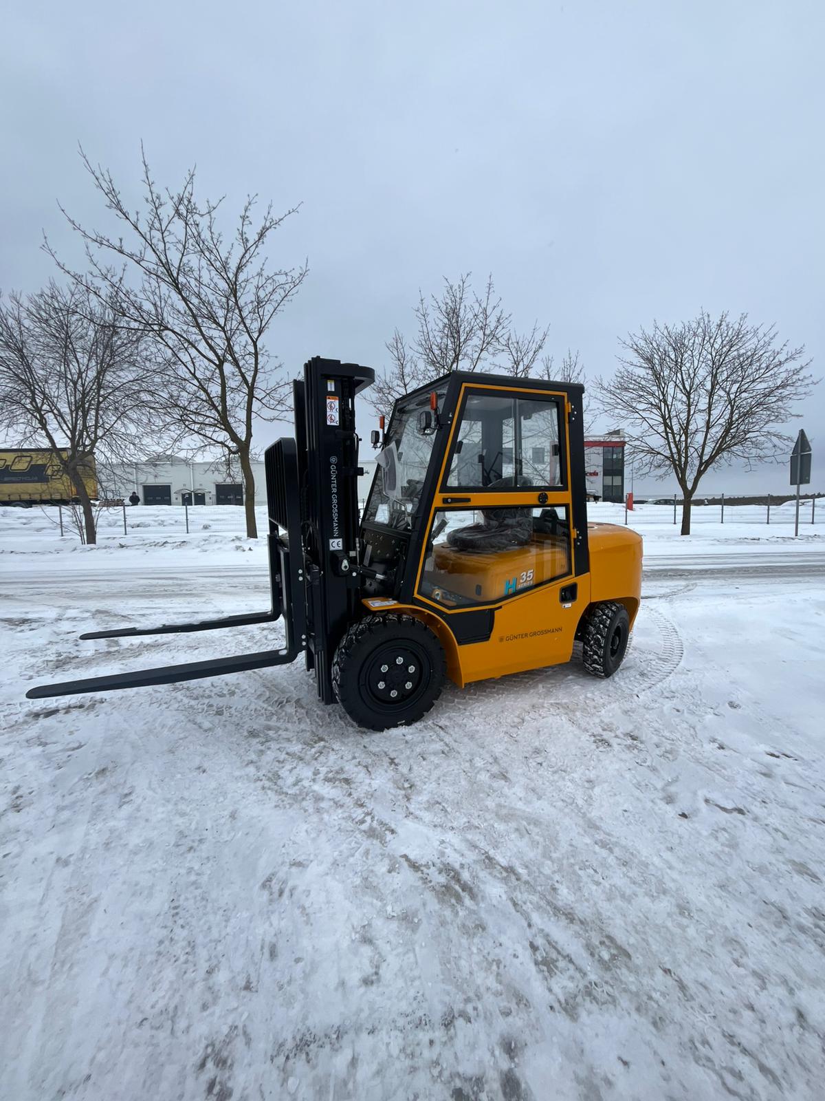 H35 3.5T 4.5M Kabina to również komfort pracy operatora. Ergonomiczna kabina z intuicyjnym sterowaniem oraz doskonałą widocznością pozwala na precyzyjne i bezpieczne operowanie wózkiem. Wydajność zwiększa także duży zbiornik paliwa o pojemności 55 L, który zapewnia dłuższą pracę bez konieczności częstego tankowania.